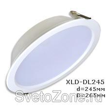 Компактный корпус «XLD-DL» позволяет устанавливать светильники в местах с ограниченным пространством. Диаметр отверстия для установки светильников составляет от 95мм до 245мм в зависимости от модели. Светорассеивающее стекло, изготовленное из оптического поликарбоната, обеспечивает равномерное рассеивание света. Уровень пульсации составляет не более 0,2%. Светильник комплектуется внешним источником питания. К заказу доступны различные варианты цвета свечения светодиодов: холодный белый (WHC), естественный белый (WHS) и теплый белый (WHW). Доступны модификации с функцией «диммирования», и возможность покраски корпуса в любой из цветов по каталогу «RAL».