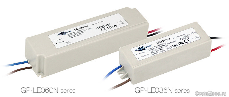 КПД драйверов достигает 85%, что говорит об их высокой экономичности. Кроме того, благодаря миниатюрным размерам, 110 x 35 x 25 мм у GP-LE036N и 163 x 45 x 33 мм у GP-LE060N (ДxШxВ), данные драйверы упрощают установку светодиодных светильников. Вместе с низкой ценой такие характеристики делают драйверы идеальным выбором для светодиодных светильников постоянного напряжения.