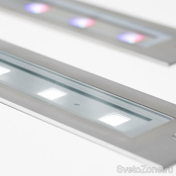 Модульные линейные светильники выпускаются в цветности светодиодов RGBW, DW (динамичный белый), CW (холодный белый), WW (теплый белый), и предназначены для монтажа "заподлицо" в потолок, стены, пол. Благодаря степени защиты IP67 приборы могут быть использованы в проектах ландшафтного и наружного архитектурного освещения.