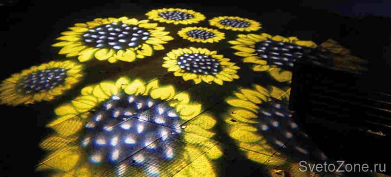 Мощный гобо прожектор с переменным фокусным расстоянием (zoom оптикой), предназначенный для проецирования изображений в комбинации с возможностью смены цвета и другими специальными эффектами.