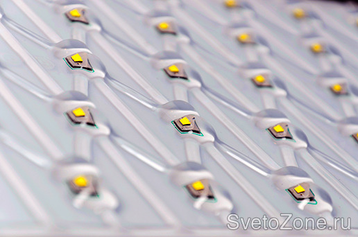 Также в одном светильнике можно использовать сразу несколько вариантов линз и формировать различные кривые силы света, в том числе и асимметричные. Специальный состав образует единое целое с поверхностью платы и корпусами светодиодов. Световая поверхность заполняется с внешней стороны до уровня оптических элементов, вытесняя воздух и обеспечивая высокую прочность конструкции. Таким образом, осуществляется эффективный теплоотвод, что значительно увеличивает срок службы диодов.