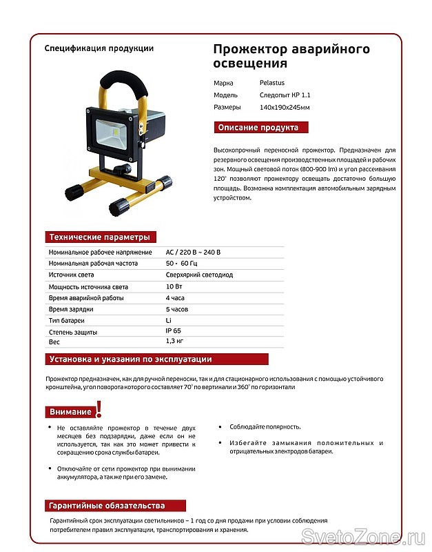 Это довольно интересная модель прожектора позволяет производить работы в неосвещенных зонах без использования рук. Есть возможность поставить прожектор в любое удобное место, настроить углы наклона. Мощность 10Вт, влагозащита IP65, время работы от аккумулятора 4 часа делают этот прожектор "бесценным" инструментом в решении сложных монтажных и аварийно-ремонтных задач.