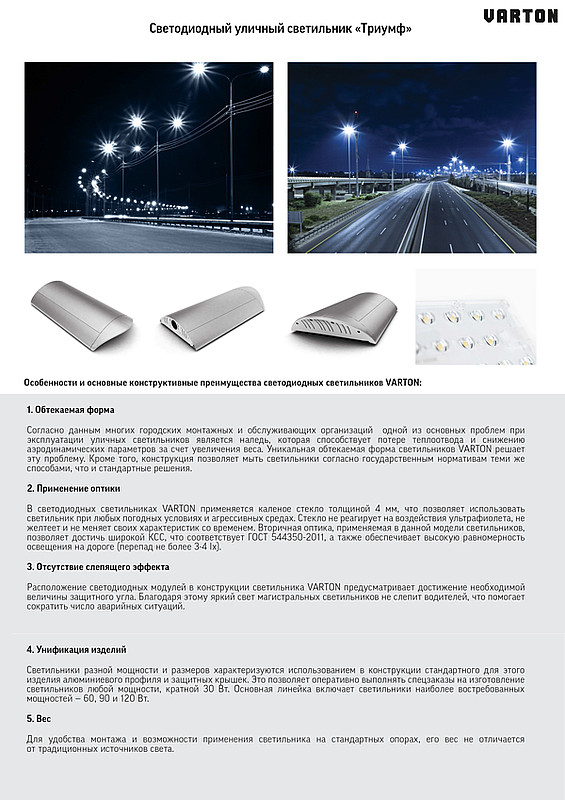 В массовое производство запущены уличные светодиодные светильники VARTON серии «Триумф».