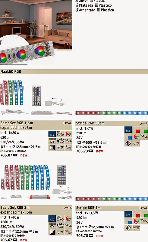 Вы также можете ознакомиться с новыми вариантами светодиодных лент на дистанционном управлении с возможностью разноцветного освещения и любой цветовой температурой (от 2700 до 6500 К), сверхудобными плоскими настенными светильниками с самоклеющимся кабелем, практически незаметными встраиваемыми потолочными светильниками и спотами для мебели, функциональными новомодными аксессуарами и разнообразными лампами.