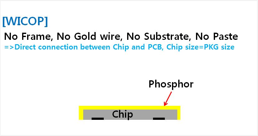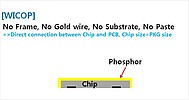 Технология WICOP2 является революционным решением, которое устраняет множество недостатков, существующих на сегодня в светодиодной отрасли. В случае производства традиционных корпусированных светодиодов требуется как целый ряд оборудования для установки кристалла в корпус, разварки золотых проводников для электрического контакта, так и дополнительные материалы, например кристаллодержатель, золотая проволока, адгезив для закрепления кристалла. Сам светодиод оказывается значительно больше исходного кристалла, что приводит к увеличению печатной платы и изделия в целом.Работы по минимизации корпуса ведутся начиная с 2012 года. Однако все существовавшие до последнего времени разработки подразумевали необходимость установки кристалла на подложку, что не позволяло добиться желаемого эффекта минимизации конструкции и не обеспечивало должного уровня теплопроводности конструкции.Seoul Semiconductor была первой компанией, добившейся максимального упрощения и минимизации светодиода в новом продукте WICOP2. Начиная с 2013 года компания применяет эту технологию для подсветки светодиодных телевизоров, вспышек мобильных устройств а также головного освещения автомобилей. Опыт непосредственной установки кристаллов на печатную плату показал преимущества данной технологии для обеспечения комфортного теплового режима, высокой эффективности и низкой стоимости решения. А минимальные габариты светодиодов позволяют создать уникальный по размерам источник света.