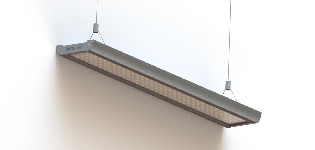 Цветовая температура в 4000 K поможет создать комфортную обстановку в любом помещении, будь то сетевой магазин или современный офис. Светодиодные светильники СПО Retail доступны к заказу с двумя типами креплений: на трос и на стену. По умолчанию в заводской комплектации длина изделия составляет 1050 мм. Длину троса можно выбрать (от 200 до 500 мм).