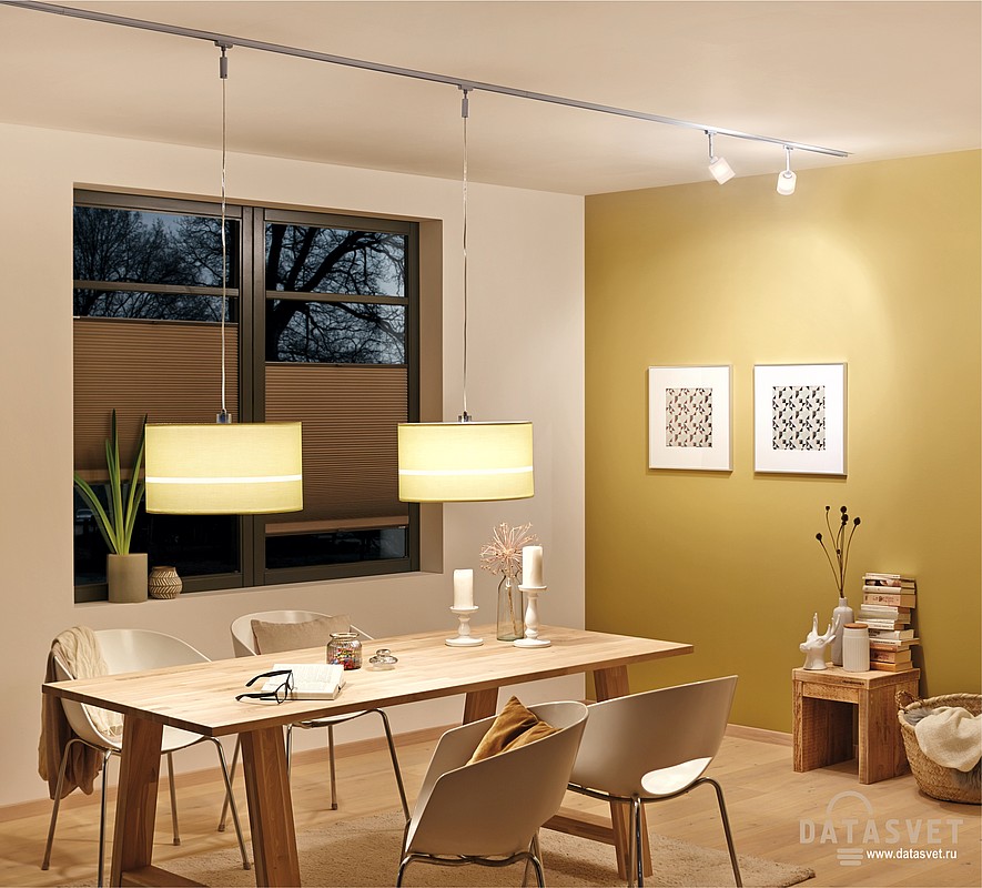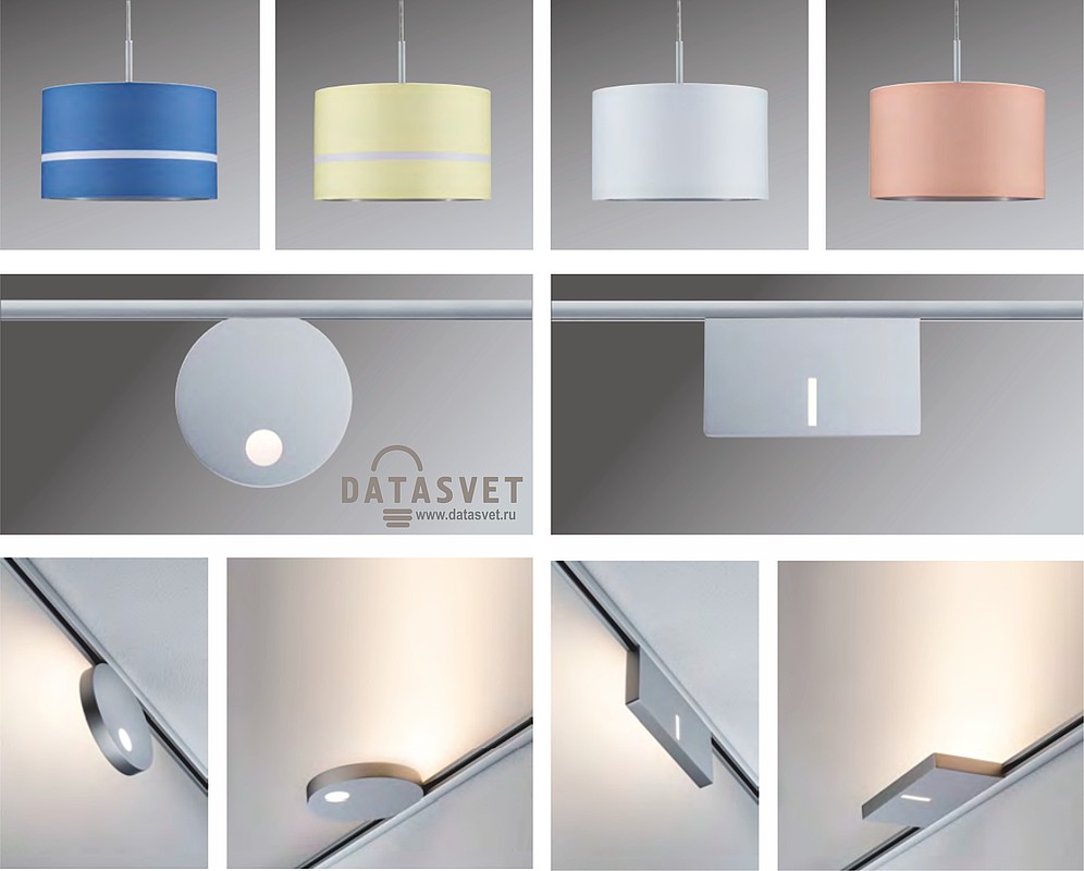 В новом каталоге представлено больше светодиодных светильников разных геометрических форм с широко направленным, очень ярким светом. А для любителей классики, впервые, специально для рельсовых систем освещения, Paulmann ввёл в ассортимент тканевые абажуры больших диаметров синего, жёлтого, белого и розового цветов. Из абсолютно нового, также: беспроводный адаптер, позволяющий с пульта ДУ переключать режимы свечения разных сегментов треков, и датчик приглушения света с плавной регулировкой яркости. По сути, с помощью этих новых устройств, представляется возможным создавать различные сценарии освещения, как в двухфазной системе. Традиционно, все варианты светильников повторяются в трёх основных цветах: хром, хром матовый или белый. Подробнее на стр.: 132-170.