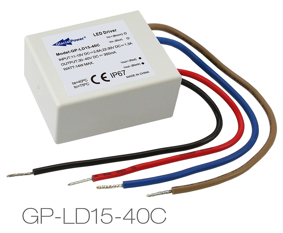 Компания GlacialPower, подразделение технологической корпорации GlacialTech, с радостью представляет новый блок питания GP-LD15-40C с выходом на 30-40 вольт и расчётной мощностью 14 ватт. Блок питания GP-LD15-40C поддерживает входное напряжение в диапазонах от 11 до 15 вольт и от 22 до 30 вольт постоянного тока. Этот прочный и водонепроницаемый блок питания имеет встроенные функции безопасности для защиты самого себя и подключенных устройств, в том числе аккумуляторных батарей и светодиодных модулей.