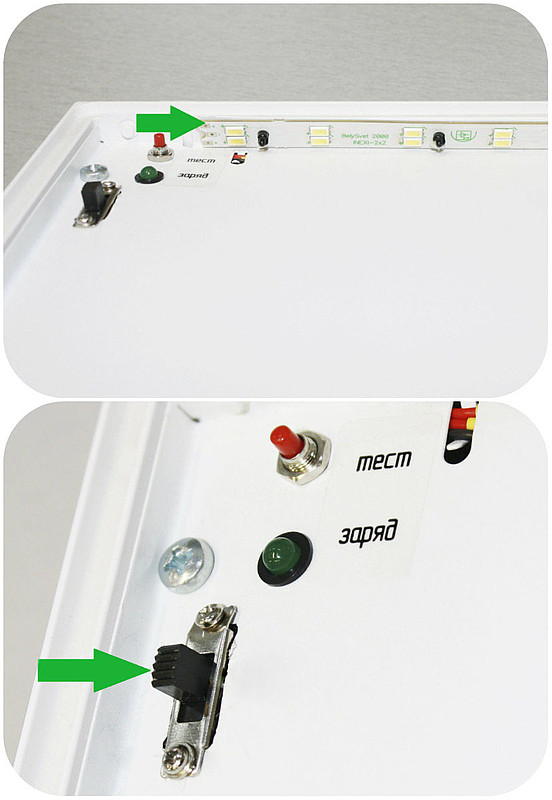 Срок службы 100 000 часов обеспечивается при своевременном, через 50 000 часов эксплуатации (при плановой замене аккумуляторной батареи), переключении используемых светодиодов источника света на резервные, переключатель находится внутри светового прибора.
