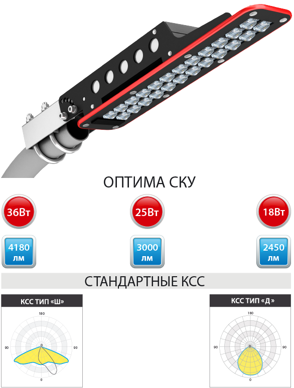 Обновленные светильники серии ОПТИМА СКУ отличаются высокой эффективность, светоотдача с учетом всех потерь составляет более 150лм/Вт.