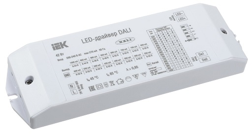 Драйвер DALI IEK® предназначен для преобразования переменного напряжения сети в постоянный стабилизированный ток и применяется для питания светодиодных светильников с возможностью управления (диммирования) освещения по стандартному цифровому интерфейсу DALI.