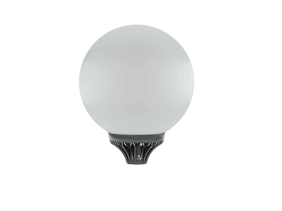 Рассеиватель выполнен в традиционной форме шара. Используемый при его производстве опаловый ПММА устойчив к воздействию УФ-лучей и не пожелтеет со временем. Источники света распределены таким образом, чтобы создавать равномерную засветку по всей плоскости шарообразного рассеивателя.