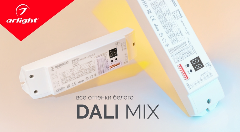 Современное оборудование для управления освещением позволяет быстро менять световые сценарии в помещении. В серии DALI-MIX появились диммеры-контроллеры для управления микс-источниками света. Новинки обеспечивают плавное диммирование и возможность регулировать цвет свечения от теплого белого до холодного. Теперь не нужно идти на компромисс и выбирать какой-то один оттенок белого, диммеры обеспечат комфортное освещение с необходимой цветовой температурой в любое время суток.