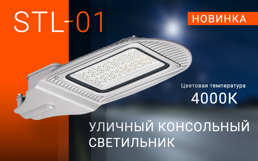 Уличные консольные светильники STL-01, с широкой осевой кривой силы света (КСС типа ШО) предназначены для освещения автомобильных дорог общего пользования различных категорий, улиц, площадей, пешеходных зон, парков, парковок, дворовых и придомовых территорий. Высокая эффективность, отличный дизайн и сборка изделия, а также надежный монолитный конструктив корпуса позволяют использовать серию STL-01 для освещения самых ответственных объектов уличной дорожной сети.