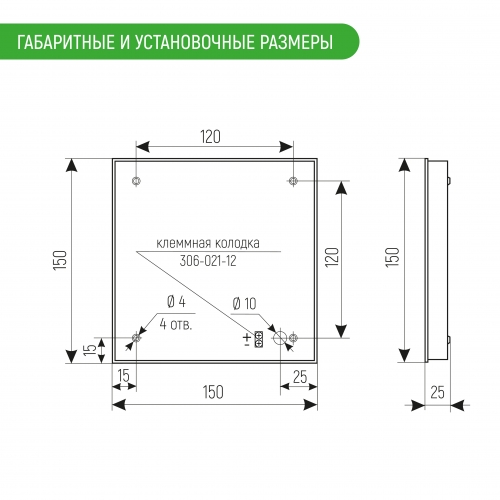 Габаритные размеры 150 х 150 х 25 мм