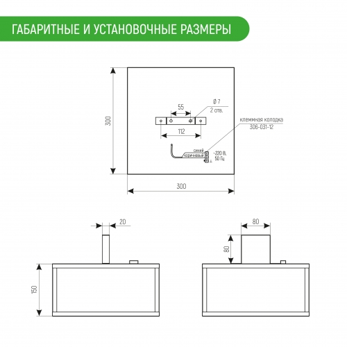 Габаритные размеры 300 х 230 х 300 мм