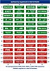Стандартный набор надписей и пиктограмм (см. рис.) соответствует нормам аварийного освещения (размер и форма символов, цвет фона). Доступно изготовление светоуказателей с любыми изображениями и надписями на заказ.