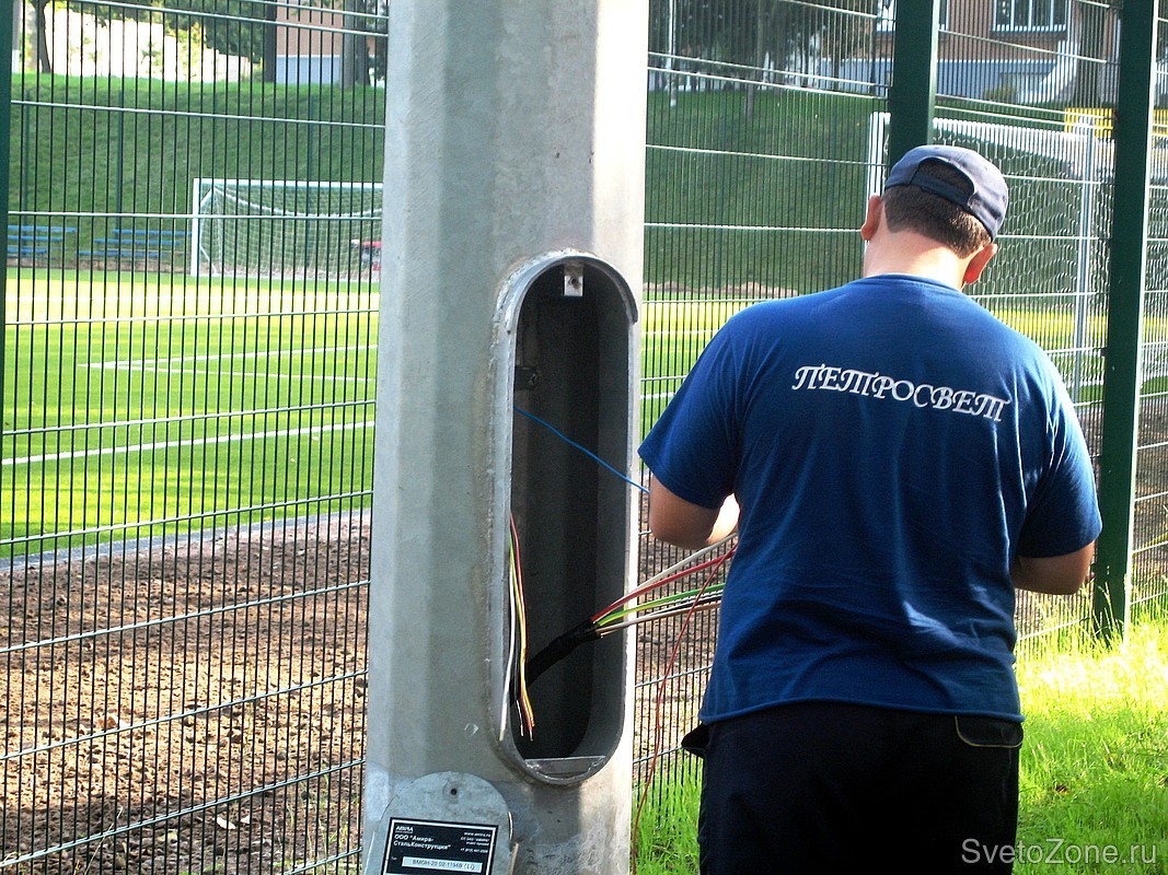 На стадионе в Курортном районе Санкт-Петербурга для устройства наружного освещения применены опоры и прожекторы производства ГК «АМИРА».