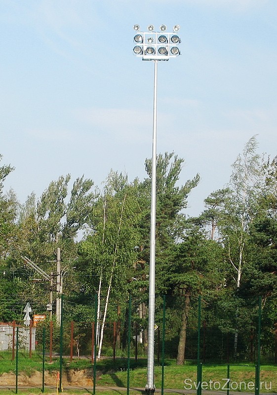 На стадионе установлены 4 стальные граненые высокомачтовые опоры ВМОН со стационарной короной для размещения осветительных приборов высотой 20 метров.