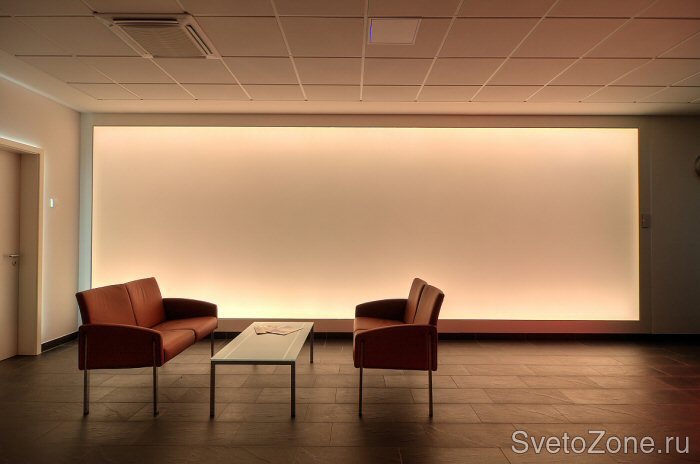 Более 4500 белых и цветных светодиодов под управлением мощного современного контроллера создают великолепный ровный свет. А благодаря их маленькому размеру вся инсталляция достаточно компактна. Примером может являться стена площадью 17м2, сделанная из высокоэластичной полупрозрачной фольги толщиной 0.4 мм и скрывающей за собой светодиодную инсталляцию.