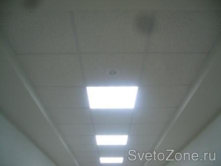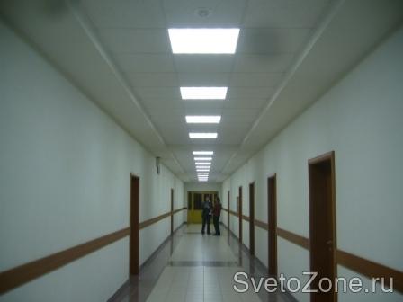В качестве испытательной площадки был выбран коридор рактората главного корпуса ПГТУ, освещаемый светильниками ЛВО 4х18 в количестве 19 шт. и декоративными галогенными точечными светильниками в количестве 18 шт. Модернизация заключалась в замене традиционных светильников ЛВО на светодиодные светильники L-OFFICE, а в точечные светильники — светодиодные лампы R63.
