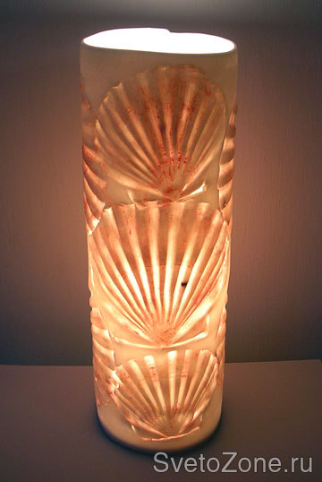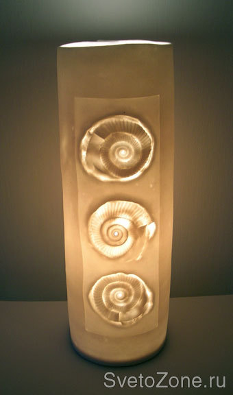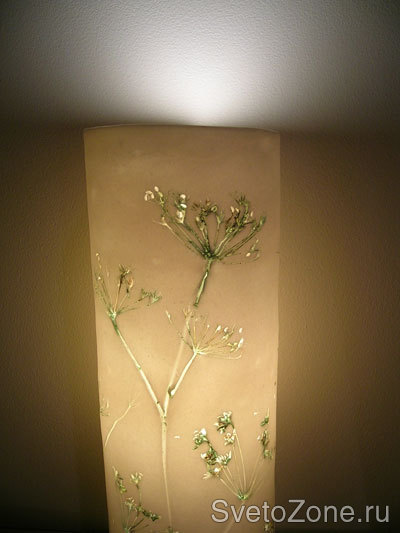 Нежные, полупрозрачные плафоны с ракушками, листочками и сухими цветами смотрятся очень трогательно и нежно.