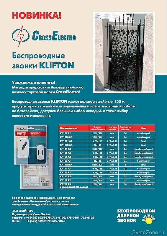 Новинка ТМ CROSSELECTRO беспроводные звонки KLIFTON