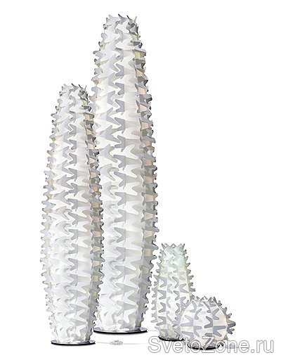 Цвет не единственное украшение новых светильников. Дизайнеры используют самые разнообразные приемы, чтобы из осветительных приборов превратить их в декоративный элемент: необычное сочетание материалов, сложносочиненные формы, заимствование идей из фэшн, имитация привычных предметов и т. д. Скучных белых сфер, минималистичных ламп, больше подходящих для операционных и музеев, неуютных конструкций из стали — всего этого гораздо меньше. Светильники стали живее и эмоциональнее. Один из самых распространенных трендов — сходство с живой природой. Не в смысле игры в органику, которую мы наблюдали несколько лет назад — все эти сперматозоиды и прочие округлые уродцы,— а по-настоящему. Светильников в виде разнообразных растений, представленных более или менее реалистично, появилось в этом году великое множество. Хитом выставки стала серия Corallo марки Pallucco: торшеры, потолочные и настольные лампы в виде стилизованных пучков кораллов (хотя их запросто можно принять и за какую-нибудь колючку). Бесхитростно и очаровательно. Slamp произвел целую серию кактусов разных размеров, названную, соответственно, Cactus. Марка Zonca совместно с именитым французским декоратором Жаком Гарсией представила новую коллекцию Les Botanics — не просто скромную стилизацию из металла или пластика, а целый лес причудливых растений, полностью выдутый из стекла разных оттенков красного. Автор говорит, что хотел немного расцветить серые будни. Его охваченный пожаром ботанический сад можно упрекнуть в излишестве или даже китче, но уж никак не в унылости. Марка Tredicidesign решила не столько имитировать флору, сколько взять ее в соучастники. Подвесной светильник Flora состоит из металлического скелета и кашпо из муранского стекла, в которые можно посадить цветы. Ну а самую необычную лампу из этой серии мы уже печатали в рубрике "Дизайн" — Life 01 от Flos, стеклянная ваза, которая зажигается, когда в нее наливают воду и ставят цветок, и гаснет, когда он увядает.
