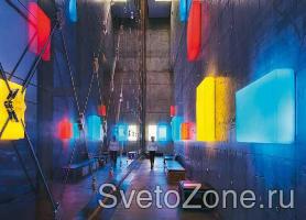 С таким цветовым оформлением гармонично сочетается излучение 800 различных светильников с галогенными лампами накаливания.