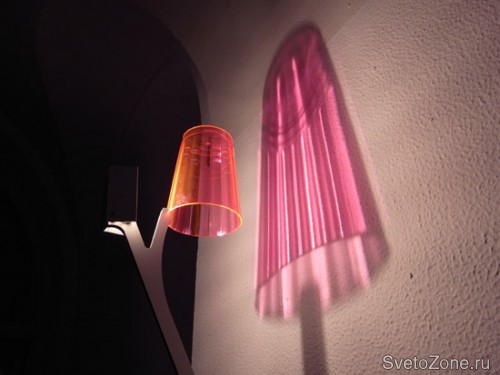Абажур, который предлагается в розовом, желтом, оранжевом и голубом вариантах, делает отбрасываемую тень цветной. По мнению автора новинки, бонус в виде проекции — это как раз то, чего не хватает классическим скучным абажурам. Неожиданная оптическая иллюзия, возникающая при банальном включении лампы, доставляет прямо-таки эстетическое удовольствие. В этом в полной мере смогли убедиться посетители Международной мебельной выставки Imm Cologne 2010 в Кельне.