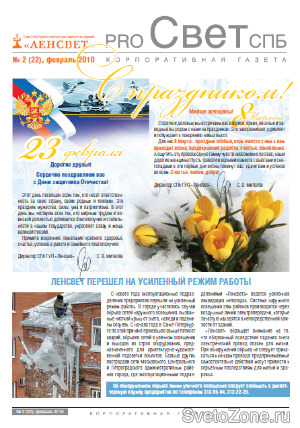На корпоративном сайте предприятия «Ленсвет» опубликована интернет-версия корпоративной газеты "PRO Свет СПб" №2 (22).
