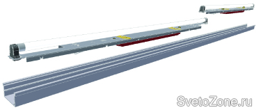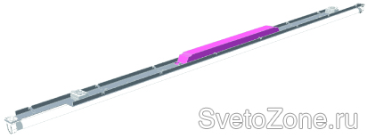 Внутри профиля размещаются перекрывающиеся вставки под стандартную люминесцентную лампу F5.