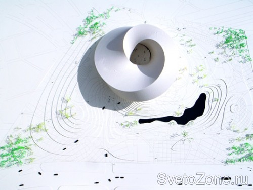 Само по себе здание сложное сопоставление различных идей и концепций. Оно образует спиральную окружность вокруг крепкого вертикального стержня, который позволяет посетителям библиотеки передвигаться между этажами. Изгибы музея образуют лист Мёбиуса, таким образом внутреннее пространство переходит во внешнее и обратно; подобным образом стены переходят в крышу, а крыша трансформируется обратно в стены. Естественный свет проникает во внутренние коридоры сквозь геометрические отверстия во внешней оболочке, создавая прекрасно освещённые пространства, идеальные для чтения.
