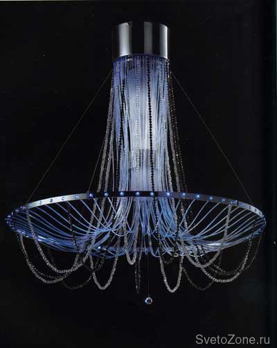 Модель обладает футуристичной формой, причудливыми очертаниями и по-настоящему звездным дизайном. Украшение из черных и серебристых бус создает впечатление млечного пути на темном полотне ночи, а глубокий синий цвет притягивает взгляды. Стильный пришелец от фабрики Sil Lux обещает перевернуть представления о роскошном свете своего владельца. Осваивать необъятные просторы дизайна можно в Салоне света и мебели MODUL.