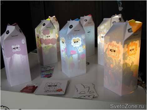Серия светильников, получившая название «Milk Gone Bad», что в переводе с английского означает «Испорченное молоко» смотрится забавно, стильно и креативно. В коллекцию вошли восемь оригинальных ламп, созданных в виде молочных пакетов.