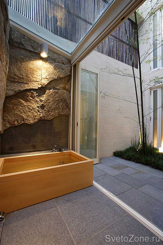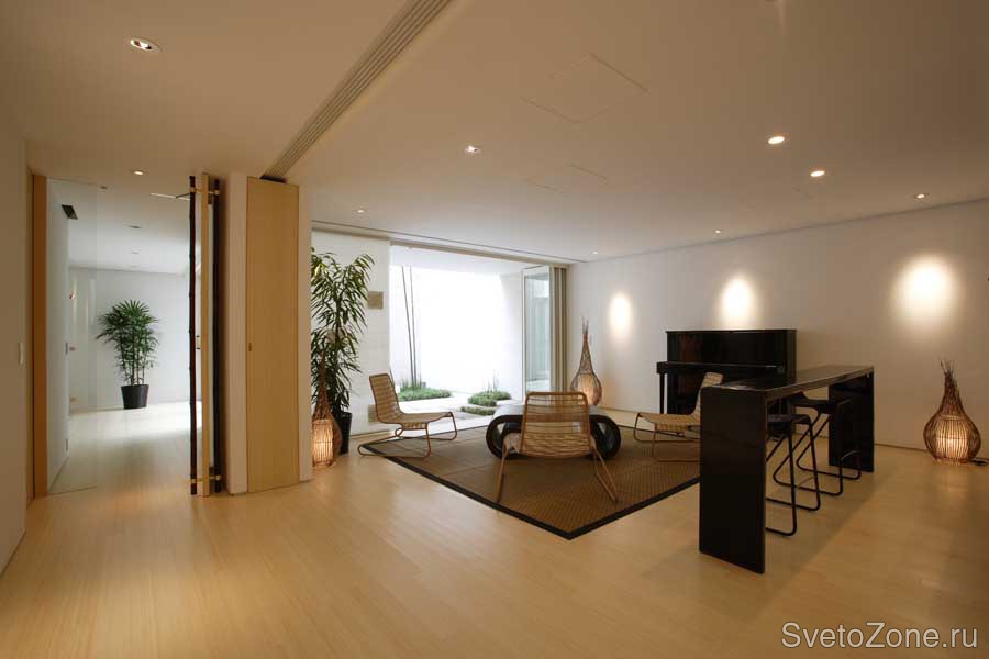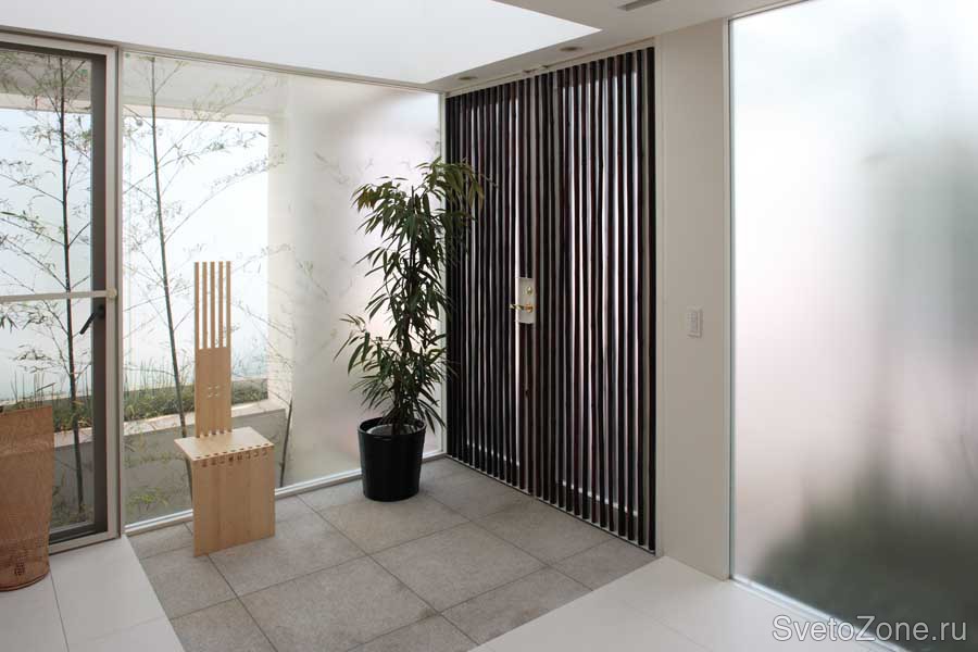 Традиционный для японцев подход в строительстве жилища, в основу которого положена философия созерцания за окружающей природой, невозможна в густонаселенных районах. Архитекторы выбрали путь погружения не во внешнее, а во внутреннее пространство.