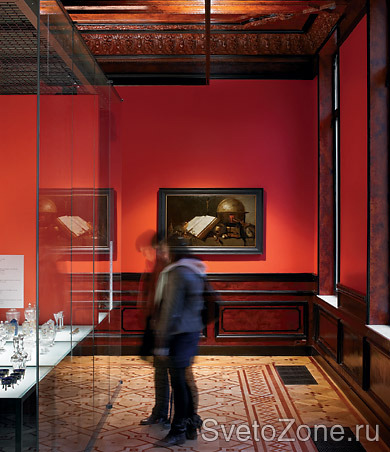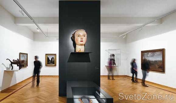 Кроме того, в различных зонах музея для освещения служат: