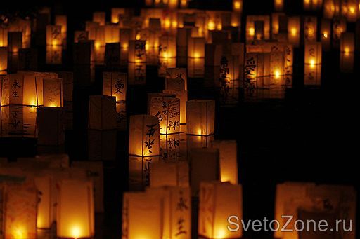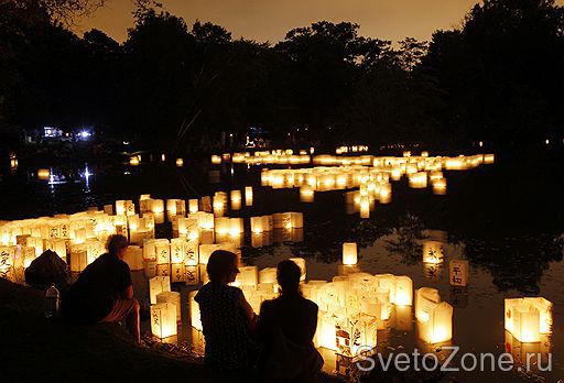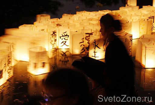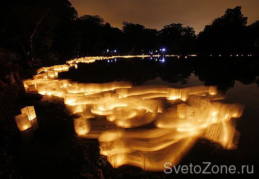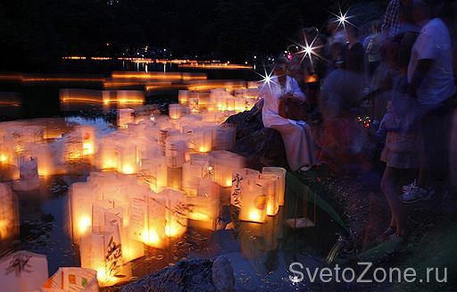 В Бостоне проходит ежегодный японский фестиваль светящихся фонарей. Согласно буддистским традициям, в это время года открываются специальные врата для общения с предками. Посетители праздника украшают бумажные фонари и запускают их в озеро.