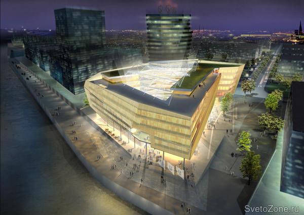 Для вечернего освещения совместно с архитекторами бюро Behnisch Architekten и фирмой Licht 01 – Winkelmann были разработаны уникальные светильники.