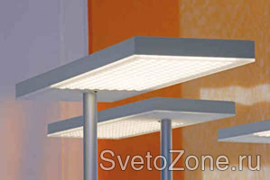 Если включены все светодиоды (излучающие вниз и вверх), то светильник потребляет 130 Вт, что на 110 Вт меньше, чем светильник традиционной модели с четырьмя компактными люминесцентными лампами по 55 Вт.