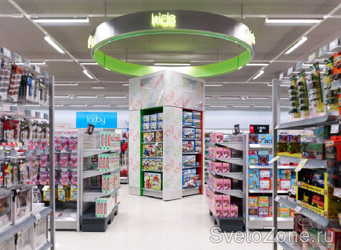Одним из определяющих критериев при разработке новой системы освещения являлась ее энергоэффективность и простота в установке. Разработчики выбрали iTrack, поскольку эта система дает возможность сочетать в пространстве магазина высокоэффективные светильники iTrack Line, оснащенные отражателем со средним лучом, и светильники с асимметричным отражателем для освещения вертикальных поверхностей.