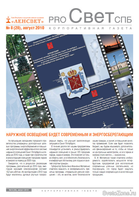 Августовский номер корпоративной газеты "PRO Свет СПб"На корпоративном сайте предприятия опубликована интернет-версия корпоративной газеты "PRO Свет СПб" №8 (28).
