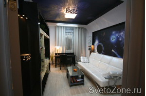 Осветительные приборы от Eco Light Group в стиле модерн отлично дополнили интерьер и придали ему еще больше выразительности. Хромированная арматура, прозрачные кристаллы и рисунок в виде созвездия – явные атрибуты космической атмосферы.