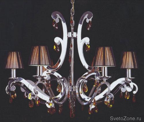 Преимущество этого осветительного прибора – в универсальности: «Perfection» удачно впишется в большинство как традиционных, так и новомодных интерьеров. Такое возможно благодаря хромированному необычному каркасу светильника. На каждый завиток основания «Perfection» прикреплены кристаллы из коричневого стекла. Люстра имеет пять плафонов, обтянутых красивой коричневой тканью в цвет подвескам.
