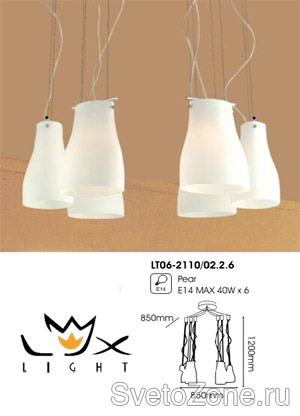 Лампочки: 6 x 40W (E14), в комплект не входят.