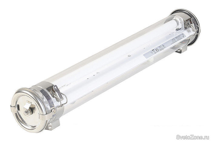 Цилиндрический корпус, оснащенный трубчатыми люминесцентными лампами, изготавливают из поликарбонатных материалов и боросиликатного стекла, которое прекрасно отражает ультрафиолетовое воздействие. Концевые колпаки и хомуты производятся из нержавеющей стали, благодаря чему светильники получают надежную защиту от коррозии.