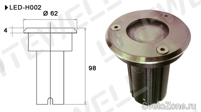 В обновленном модельном ряде светодиодных уличных светильников Litewell пополнение. Встраиваемый тротуарный светодиодный светильник LED-H002 (220В, Размер, мм : диам.62мм х98мм)