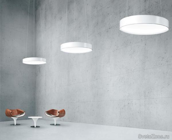 Светильники рассчитаны для встроенного, потолочного и подвесного монтажа (на тонких тросах длиной 2- 4 м). Рассеиватель, выполненный из опалового полиметилметакрилата, имеет слегка вогнутую форму, придающую внешнему виду светильника особую пластичность. Цилиндрический корпус отлит из алюминиевого сплава и может иметь различную цветовую отделку матовыми эмалями.
