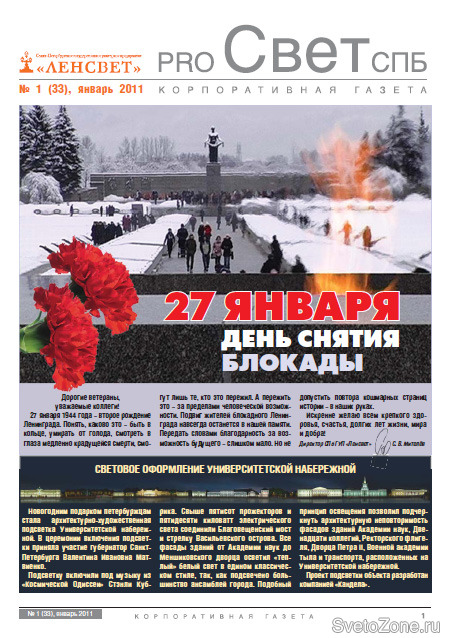 Выпуск корпоративной газеты "PRO Свет СПб" за январь