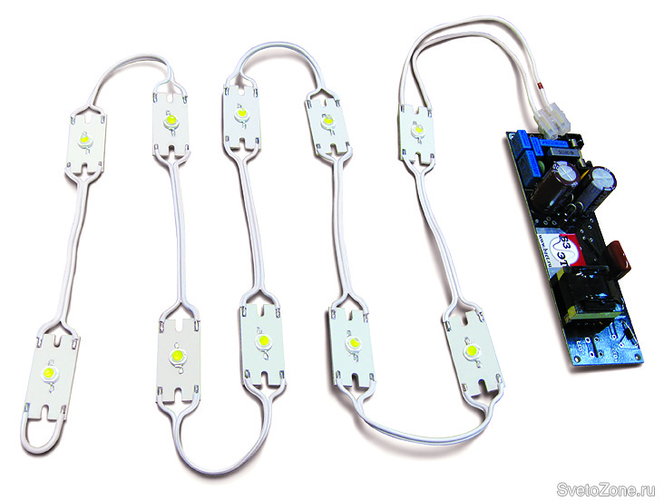 провод питания произвольной длинны и необходимое количество одиночных плат — вы сможете как угодно располагать их в корпусе светильника, ограничиваясь только собственной фантазией;